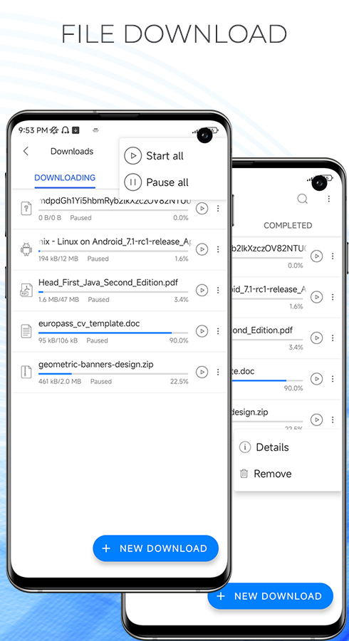 Download manager helps you to download any file from the url . You can download files by using download by entering a file url or a shared link. with resume capability .